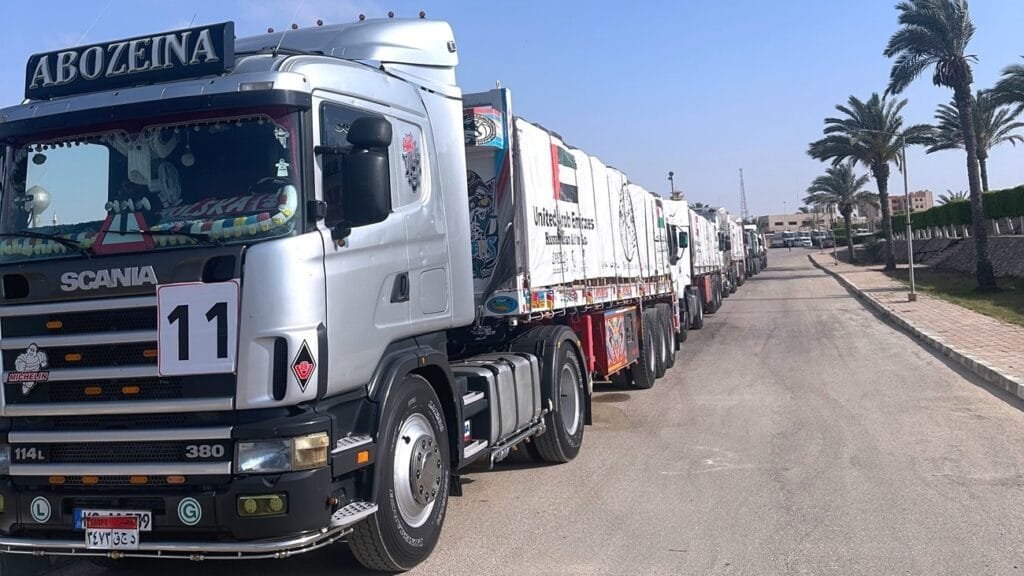25 Emirati trucks entered Gaza via the Rafah crossing, carrying a number of pipes for pumping drinking water.